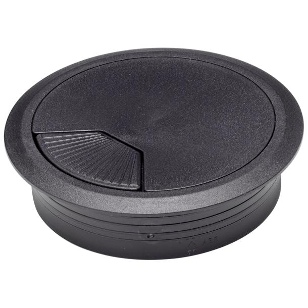 - Product description With Duraline's cable entry, not only can you effortlessly manage and route your cables and wires from one location to another, it also helps provide a neater and more organized look by concealing the wires. This cable entry made of PVC has a beautiful, satin finish in black colour and has a a diameter of Ø8cm. It can blend seamlessly with dark coloured furniture.