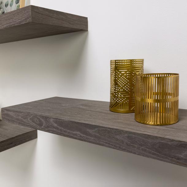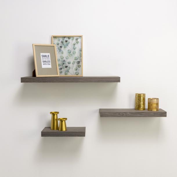 - Product description True Craftsmanship, this unique product is made from real black oak veneer and is part of the Pekodom collection. This shelf is simply floating on the wall by using the brackets included with the shelf. Place your favorite items on this rugged shelf. These wall shelves are available in multiple colors, sizes and designs. These shelves are a nice addition to any interior.