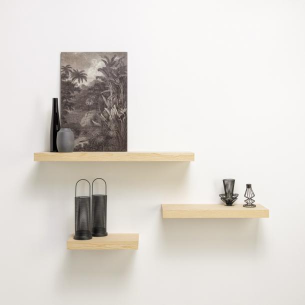 - Product description True Craftsmanship, this unique product is made from real oak veneer and is part of the Pekodom collection. This shelf is simply floating on the wall by using the brackets included with the shelf. Place your favorite items on this rugged shelf. These wall shelves are available in multiple colors, sizes and designs. These shelves are a nice addition to any interior.
