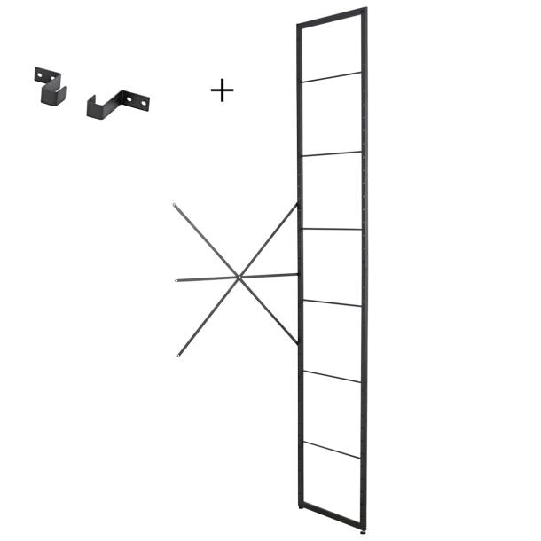 - Product description The storage extension set black is part of the Duraline standing storage system and creates a modern, functional open storage solution. Which can be used in multiple ways such as for clothes, books, shoes, kitchen items and much more. This Duraline extension set can be used in combination with the Duraline Storage starter set. The Duraline storage system has different shelves, baskets and rods to put together your own, tailor-made system. The package contains 1 wall mounting bracket to fix the mounting kit to the wall.
