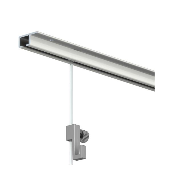 - Product description The Top Rail is a picture hanging system that can be mounted on the ceiling. The Top Rail is mainly suitable for installation in combination with a recessed ceiling. The rail can easily be mounted against the wooden side strip of the recessed ceiling. This will result in an 'invisible' picture hanging system next to the ceiling, giving you the flexibility to decorate the walls! The hanging wires with hooks can be slid into the hanging rail allowing you to move them around as you please. The complete all-in Top Rail 2-m set contains a 200-cm Top Rail, 2 hanging wires with a 4-kg hook and all the mounting materials. The RAL colour of this white Top Rail is 9003.