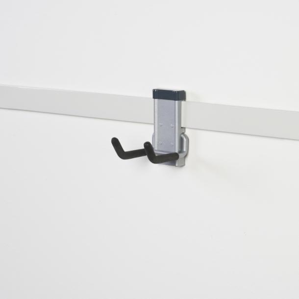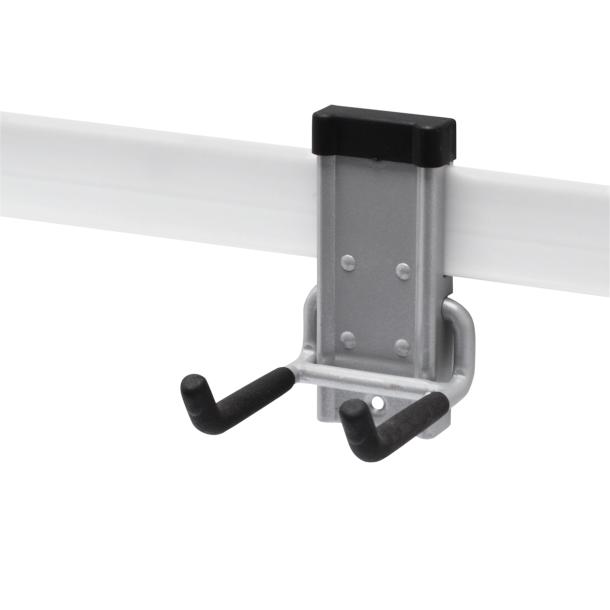 - Product description This broom storage track hook in the colour silver is made from powder coated steel. You can make a unique storage space of every wall or ceiling. It has a load capacity of 25kg and the hook is easy to install. Sometimes you may just need a bit more storage space at home or want to improve the way your things are organised. If that’s the case, then Duraline’s storage hooks are the ideal solution for creating more space. They enable you to hang things up in a cupboard, on the ceiling or in the garage, for example, so that you can store them in an easier way. Duraline’s storage hooks are also easy for anyone to put up. View the whole range at a glance and click on ‘Points of sale’ to find your ideal storage hook!