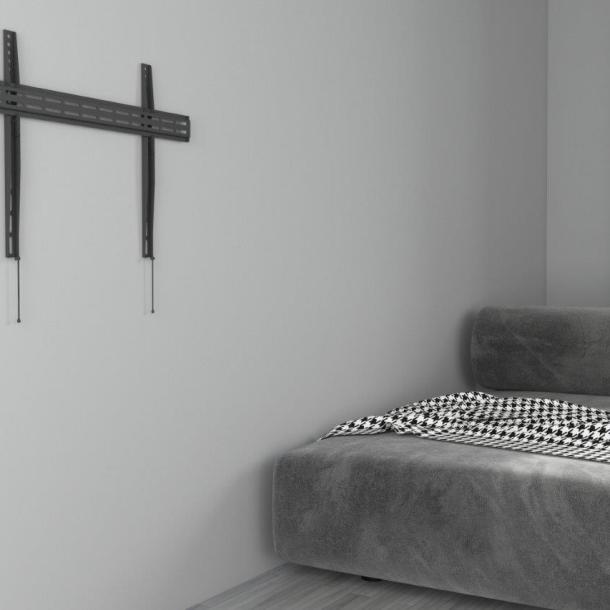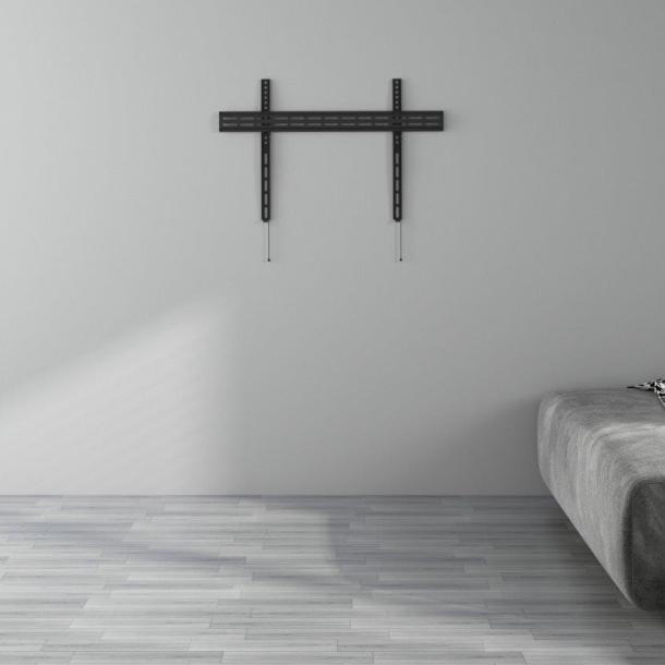 - Product description This sturdy functional fixed TV mount is suitable for all screens from 32 to 65 inch and is specially designed for large screens. The standard holes in this mount are suitable for VESA 100x100 and 600x400. Due to the matte black color, it is barely noticeable and fits well with the screen. This product is designed to be installed on timber stud walls or solid concrete walls. Before installation, make sure that the wall can support the combined load of the equipment and hardware. Never exceed the maximum load capacity of 35 KG, otherwise the product may malfunction or cause personal injury. Note: This product is for indoor use only.