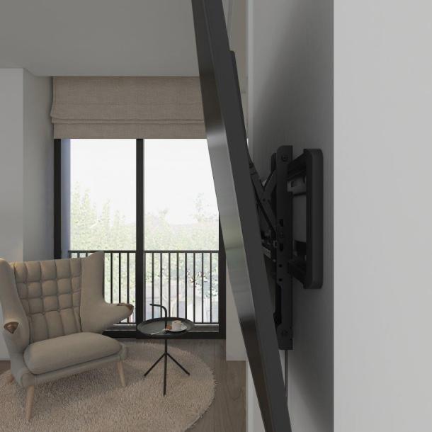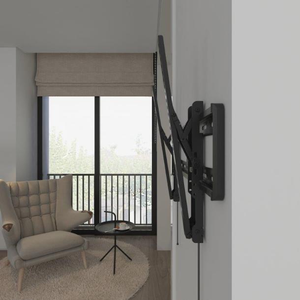 - Product description This sturdy functional tilting TV mount is suitable for all screens from 32 to 70 inch and is specially designed for large screens. The standard holes in this mount are suitable for VESA 600x400. Due to the matte black color, it is barely noticeable and fits well with the screen. This product is designed to be installed on timber stud walls or solid concrete walls. Before installation, make sure that the wall can support the combined load of the equipment and hardware. Never exceed the maximum load capacity of 40 KG, otherwise the product may malfunction or cause personal injury. Note: This product is for indoor use only.