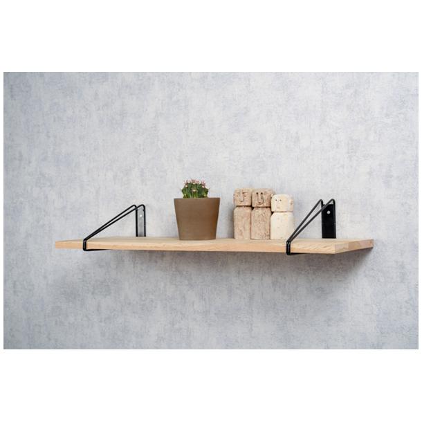 - Product description You can use this double low wall shelf support bracket to put up your Duraline wall shelf where you want it, quite easily. The wall shelf support bracket turns any wall into extra storage space and can be combined with different wooden shelves. The material is powder coated steel and the bracket has a modern design. The double low wall shelf support bracket is easy to assemble and has a load capacity of 15 kg. A wall shelf is both functional and beautiful, especially when you choose one from Duraline. Have you found a shelf that suits your interior? Then the next challenge that awaits you is to choose the right shelf support! A clip is an extremely practical choice. In spite of their stylish, minimalist look, they are extremely sturdy: they can take more weight than you might think at first glance! The Duraline range enables you to mix and match clips and wall shelves, with infinite possible combinations to choose from, in order to create the style to suit your home! Then click on ‘Points of sale’ below and find out where you can buy the shelf support.